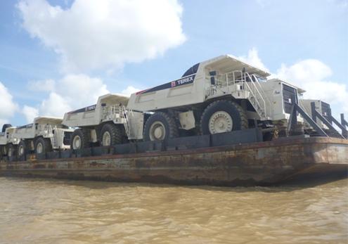 “Loading the trucks onto the barges was no easy task,” says AHM Heavy’s Marcus-Zaw Naing Oo. “To avoid sinking the barges and trucks they were loaded in a shuffle sequence to maintain the barge’s balance until all machines were in place.