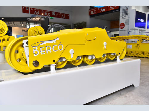 Berco’s overall track chain system includes rollers and idlers with bi-metallic bushings and heavy-duty seal groups, a metal embedded rubber track with steel chords and a high drive configuration to preserve the gearbox from shock loads.