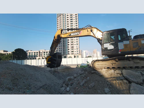 We travel to China, in the Jiangsu province, on a particular construction site, located above a subway station. Therefore, creating traffic or having too many trucks entering and leaving the construction site would have created an inconvenience and lengthened delivery times. They needed to quickly recover suitable material to fill the new structures. Like the previous story, they also installed a BF80.3 crusher bucket on their excavator, this time on a Sany 215 and crushed the rubble: no more needing to wait for materials and no need to have trucks entering and leaving the construction site, all of which benefits the flow of traffic.