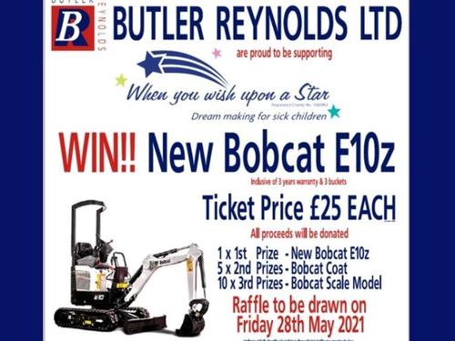 There is just one week left to enter the draw for the charity raffle of a Bobcat E10z 1 tonne mini-excavator to raise proceeds for the charity, When You Wish Upon a Star. The Grand Raffle has been organised by long-standing Bobcat Dealer, Derby-based Butler Reynolds Ltd. Butler Reynolds is hoping for a final push to beat its target of raising £20,000 for the charity, which has over 130 Wishes for children living with life-threatening illnesses on hold because of the Covid-19 pandemic.