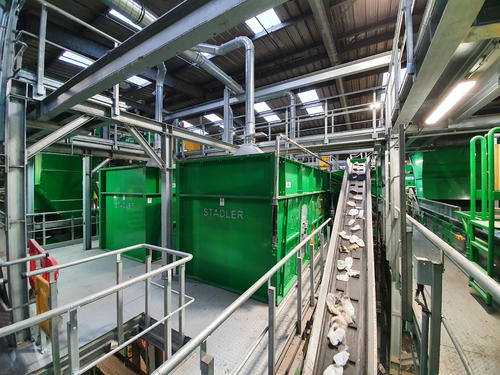 On arrival at the plant, the infeed material is first processed using brand new mechanical separation equipment, including a dosing drum, a STADLER PPK ballistic separator, a screening drum, STADLER STT 2000 ballistic separators, overband magnets and eddy current separators. Following mechanical separation, the material (apart from fibre) then goes through an air separation process before arriving at the newly installed TOMRA AUTOSORT® optical sensor-based sorting units.