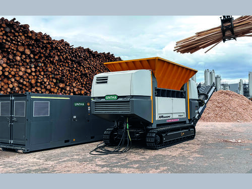As part of the VDMA Practical Days on the IFAT outdoor grounds, a UNTHA XR3000RC will be demonstrated while shredding waste wood. It is powered by the UNTHA Power Core—a self-sufficient power generator that efficiently regulates the shredder's operation.
