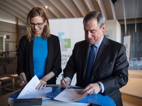 Volvo Construction Equipment (Volvo CE) has announced that it has joined the Corporate Advisory Board of the World Green Building Council (WorldGBC). Working in partnership with the WorldGBC, Volvo CE will help to influence decision-making and develop future strategies for the organization. The move was announced at the Bauma exhibition in Munich, Germany, on April 13th, where both Terri Wills, CEO of WorldGBC, and Martin Weissburg, president of Volvo CE (both pictured), were participating in a Construction Climate Challenge (CCC) seminar hosted by Volvo CE on addressing the climate implications of major infrastructure projects.