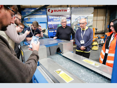 The tour then moved to the heavy recycling test area, with Bunting’s Phil Tree and Michael Allen staging separation demonstrations on the Eddy Current Separator, and the HISC and SSSC Stainless Steel Separators.