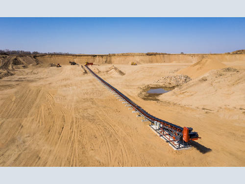 The site mines from its furthest boundary and back toward the processing plant. “While we are generally pulling conveyors out and shortening the distance of conveying, we can easily add on sections in other areas of the operation. We needed flexibility at the right price point. With the Zipline Conveyor, we have ease of assembly and ease of onsite portability,” says Hannover.