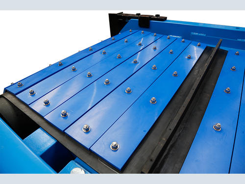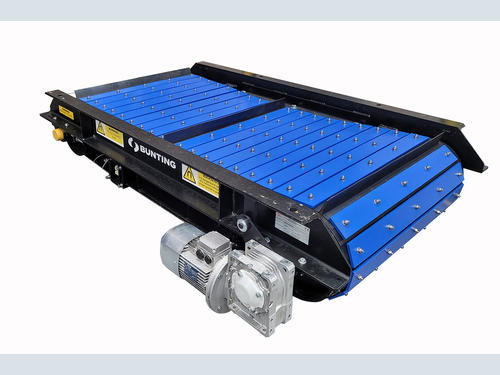 To combat the excessive wear and extend the life of a self-cleaning belt, Bunting’s engineers designed a lightweight but heavy-duty armouring for the belt. There were other options, including special wear-resistant belt coatings and other types of rubber belt. However, the armouring provided unrivalled protection, significantly lengthening belt life.DPE) slats. Each slat is 100mm wide and 10mm thick, with a length to suit the model of overband magnet. The slats are fastened to the belt using special 304 stainless steel elevator bucket bolts and nyloc nuts.