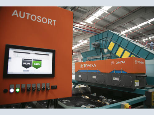“After pre-sorting, the material is crushed, washed and dried before being sorted by target colours using the INNOSORT™ FLAKE, TOMRA’s highly flexible colour and polymer flake sorting machine. Finally, the flakes are sent to the AUTOSORT™ FLAKE unit, a specialist solution for high-end flake sorting applications such as food-grade bottle-to-bottle recycling. At this sorting stage, the targeted high purity is achieved thanks to the reliable separation of colour, polymer and metal contaminants, virtually eliminating all traces of PVC, PC, PS and other unwanted polymers.”