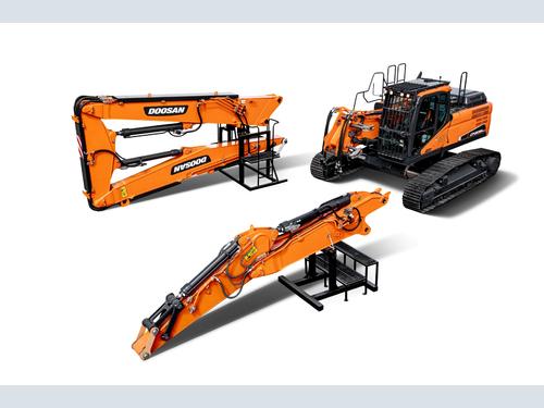 When equipped with the demolition boom, the maximum pin height is 18, 23 and 27.5 m on the DX235DM-5, DX380DM-7 and DX530DM-5, respectively.
