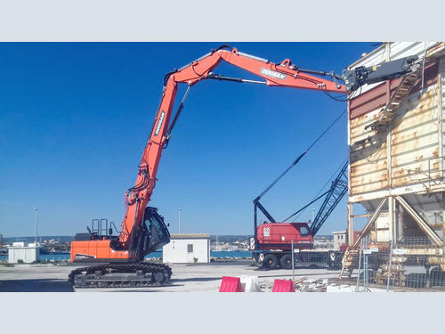 For the DX235DM equipped with the 18 m long demolition boom, the impressive working range allows the machine to work with a demolition attachment to a maximum height of 16 m. The recommended maximum combined weight for the attachment and quick coupler in this mode is 2.1 tonne.