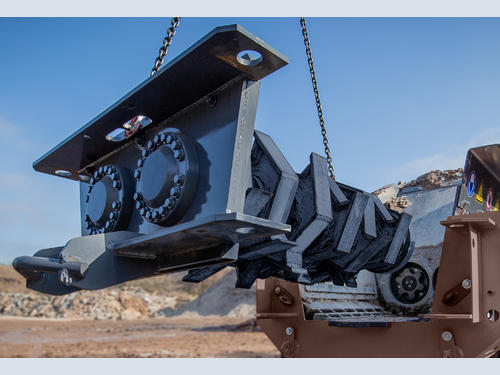 The machines are characterised by a particularly robust construction and are designed for demanding materials such as construction and demolition waste, waste wood, tyres, scrap metal or green waste. Thanks to the two-shaft quick-change system, the shredding units can be adapted flexibly and quickly - depending on the area of application and material type. Customers can choose from a wide range of specially developed shaft types such as concrete, paddle, star or metal shafts.