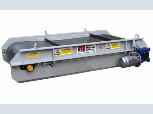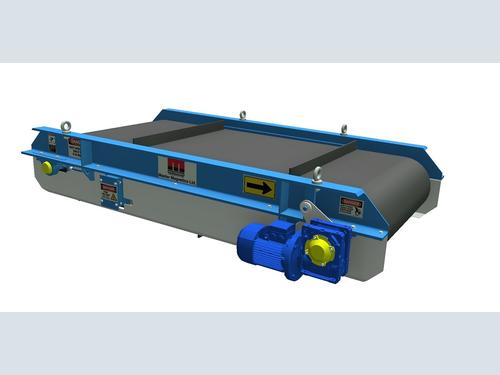 Electro Overband Magnets separate tramp ferrous metal from conveyed bulk materials. An electromagnetic coil generates a magnetic field directed down into the product flow of the conveyor. Any tramp metal entering the field is attracted and lifted out of the burden. On self-clean designs, where a belt is moving around the magnet, the tramp metal is transferred away from the conveyor and deposited in a collection area.