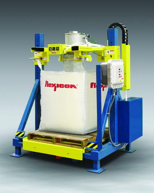 Flexicon has introduced a TWIN-CENTREPOST™ Bulk Bag Filler with XP controls and reduced height posts for low headroom applications. It is equipped with a manual fill head height adjustment to accommodate smaller bag sizes, pneumatically retractable bag hooks, an inflatable connector to seal the bag inlet spout, and a feed chute outlet port for dust-free air displacement during filling.