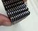 To test paramagnetic minerals again with fine particle size, a higher intensity separator is required. Vito therefore purchased a Laboratory WHIMS (Wet High Intensity Magnetic Separator) Jaw Type Separator. This separator treats slurry samples and can separate out paramagnetic particles. A stainless steel canister is placed between two high intensity electromagnetic poles. Inside the canister, various matrices can be placed depending on the material being processed. Three wedge wire matrices, made from magnetic stainless steel, are supplied with the equipment with different aperture sizes (4 x 2mm, 3 x 1·5mm & 2 x 1mm) as shown below, which are selected depending on the particle size of the sample being tested. The sharp edges on the matrices generate extremely high magnetic intensities in excess of 2 Tesla, which capture and retain the paramagnetic particles in the slurry.