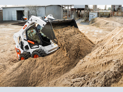 The new S630 radius lift path loader combines excellent manoeuvrability in tight areas with the reach and visibility needed for applications such as dumping materials over walls, backfilling or loading flatbed trucks. The S630 has a rated operating capacity of 1012 kg and a tipping load of 2023 kg. The S650 model features vertical lift path boom arms particularly suited to lift and carry as well as material-handling applications. The S650 has a rated operating capacity of 1227 kg and a tipping load of 2455 kg. Both models continue to offer excellent versatility through compatibility with a very wide range of Bobcat attachments.