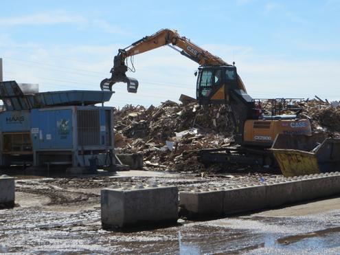 CASE’s CX290D material handling excavator, with its superior reach and lifting capacity is making short work of feeding a crusher at UPM Shotton CHP Waste Wood processing plant
