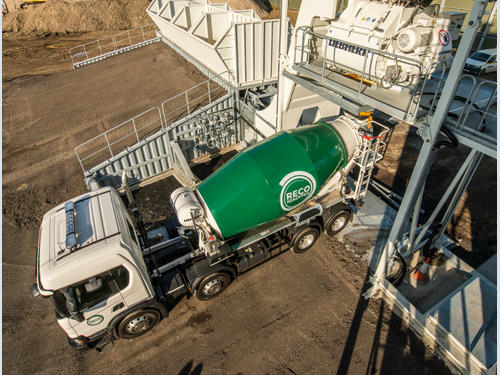To complement the batching plant, Reco Readymix has also purchased five HTM 905 mixing drums. Capable of handling a load of 8 m3, the drums have been supplied with Liebherr’s Litronic EMC control system. This intuitive system enables the operator to single-handedly and accurately control the drum rotation direction, ensuring the correct amount of material is delivered. Thanks to the system’s constant speed drive function, which reduces drum revolutions during each delivery, drum service life is extended. The low weight of the drum means that a larger payload can be carried without any reduction in the build quality and longevity of the drum and drive unit. Liebherr’s generation 05 mixer series has benefitted from a number of recent upgrades designed to aid the driver: the swivel chute is now 80 mm higher to allow a better flow angle for the outgoing material and the ladder platform has been enlarged with a new, lightweight aluminium ladder replacing the older steel version.