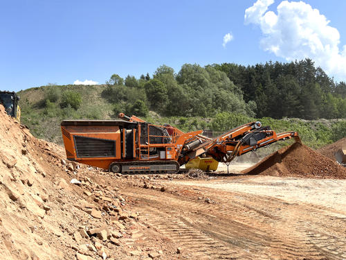The Rockster R1000S, powered by a powerful 340HP CAT StageV 9.3 engine in combination with a hydrostatic drive system, delivers consistent and continuous power to process the material effortlessly. The end products produced are used in various areas such as substructure, the cement industry or brick production.