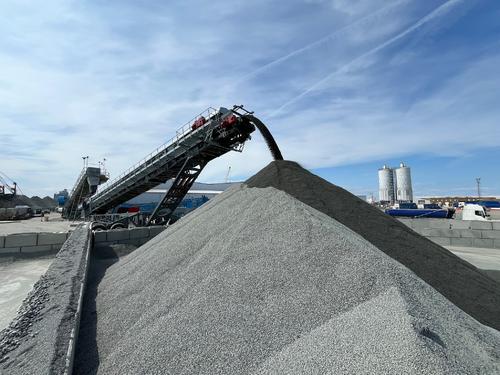 Telestack installs Stockpiling system for MIBAU Stema UK for handling aggregates from self-discharge vessels at over 2,500tph.