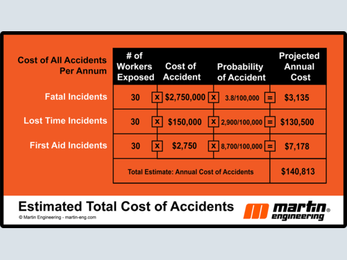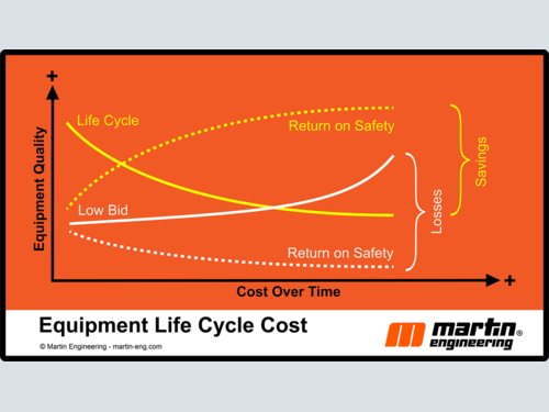Assuming the life of the conveyor is 20 years and the cost of money (discount rate) is 5 percent, the available additional investment would be about $750,000 more in design time to accomplish the 50% improvement in safety. By choosing the lowest-priced bid to meet the minimum safety requirements, the short-term expenditure ends up costing considerably more over the 20-year lifecycle. [Figure 5]