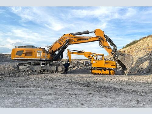 After the opening ceremony, the old excavator was driven to the neighbouring quarry. There it stood next to a modern R 978 SME from Liebherr Mietpartner GmbH, which was previously in rental use on the B58n construction site and is currently being used by another rental customer. Seeing the two different crawler excavators side by side created a huge wow effect.
