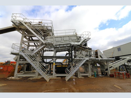 “All the +3mm material then feeds through the log washer and all the sand from the pre-screen is collected in the sump below along with any sand from the product screen. A trash screen off the back of the log washer collects any lightweight contaminants such as polystyrene, plastics and wood.