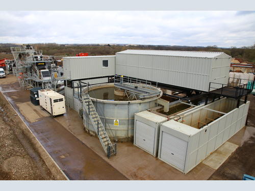 A custom water treatment system has been paired to the plant, incorporating an 8m diameter thickener, an overhead beam filter press and the new, innovative sludge and clarified water storage and pumping system.